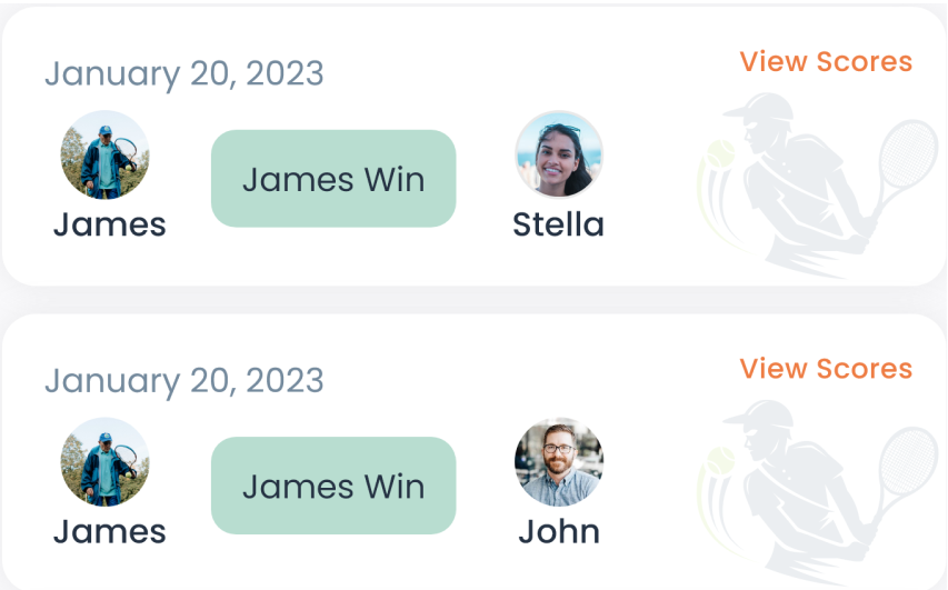 In-app notifications and reminders were provided for upcoming matches, enabling seamless communication between players and ensuring users never missed their scheduled games.
